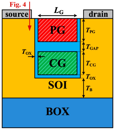 | Program gate thickness Control gate thickness Oxide thickness between PG and CG | TPG TCG TGAP | 20 nm 20 nm 10 nm |