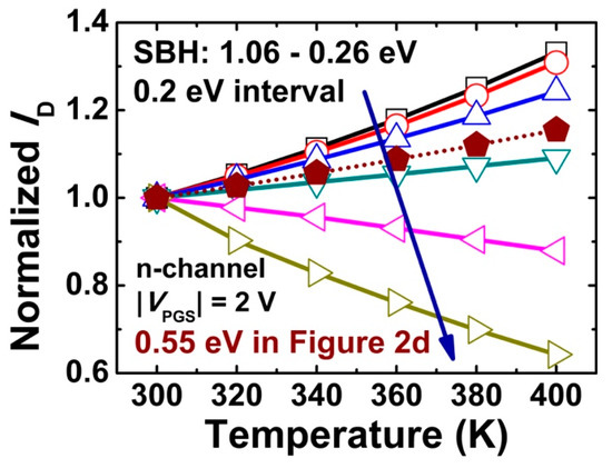 - Appenzeller, J.; Radosavljević, M.; Knoch, J.; Avouris, P. Tunneling versus thermionic emission in one-dimensional semiconductors. Phys. Rev. Lett. 2004, 92, 4. [Google Scholar] [CrossRef] [PubMed]