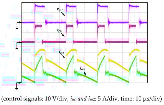 The waveforms of control signals and corresponding input currents at full load under the DIO situation.