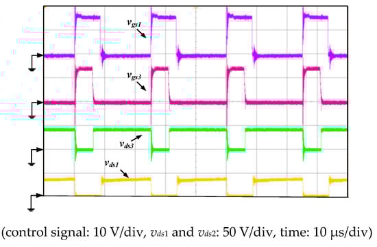 According to the structure of the DHSIC, the semiconductor devices, S1, S2, D1, and D2, will have the same voltage stress. In addition, the power stage has inherently symmetrical configuration and is able to operate independently and individually at primary side. Therefore, the voltage stress of S1, S2, D1, and D2 can be determined from Figure 7, accordingly all of which will be equal to VC1. From Equation (4), this voltage stress is expressed as