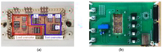 Decapsulated IGBT module (F4-50R12KS4): (a) F4-50R12KS4 with silicone gel removed; (b) power converter board with F4-50R12KS4 mounted.