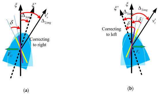 Force analysis when correcting to different directions with the consideration of . (a) Correcting right. (b) Correcting left.