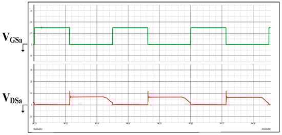 Simulation of voltage waveforms of Sa (VGSa, VDSa), VGSa, VDSa: 10 V/div, Time: 20 µs/div.