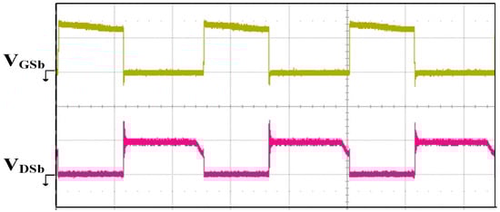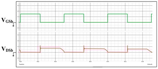 Simulation of voltage waveforms of Sb (VGSb, VDSb), VGSb, VDSb: 10 V/div, Time: 20 µs/div.