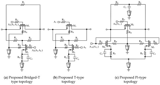 - Dogan, H.; Meyer, R.G.; Niknejad, A.M. Analysis and design of RF CMOS attenuators. IEEE J. Solid State Circuits 2008, 43, 2269–2283. [Google Scholar] [CrossRef]