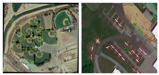 The image data used in this experiment are from a high-resolution optical remote sensing image. The classifier based on a conventional dataset training has poor detection ability with high-resolution remote sensing images. The main reason is that a remote sensing image has particular features, such as various scales, a special perspective, small objects, multi-directionality, and high background complexity. In this paper, several mainstream remote sensing image databases are used as experimental datasets, including DOTA [], UCAS-AOD [], NWPU VHR-10 [], TGRS-HRRSD-Dataset [], and RSOD []. In addition, stretched image histogram [coefficient 0.02], rotation, and random flip are used to expand the dataset.