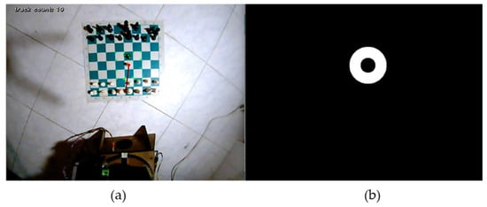 In [15,16], the researchers used on-board magnetic sensors to detect the movement of the pieces, and a fixed position for the board relative to the robot in order to ease the manipulation [17,18,19]. Other works used 2D and depth cameras to follow the development of the game [20,21,22,23,24], while in the investigation carried out in [25], depth cameras were used to detect the occupancy of the board squares and compare the current state with the previous states.