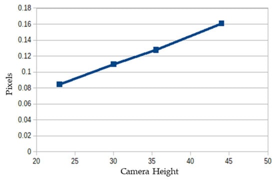 Relationship between centimeters and pixels with the camera height.
