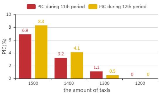 As can been seen in Figure 9, during the 11th and 12th period, after the number of taxis with charging behavior is limited, the PIC value is reduced to 0 at the same time. Therefore, the number of private cars with charging behavior should not exceed 3500, while 1200 for taxis in one day.