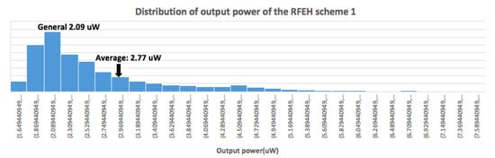 Figure 24 and Figure 25 show the measured output power and its distribution of the proposed RFEH scheme 1 as measured for an hour. As shown in the Figure, the general output power that the proposed RFEH scheme 1 generated is 2.09 W, and the average power for the one-hour measurement corresponds to 2.77 W.