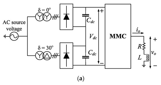 In Figure 1, the mathematical model of MMC can be generated by applying Kirchhoff’s law. Output current io and circulating current icirc equations can be derived by using Kirchhoff’s current law as follows: