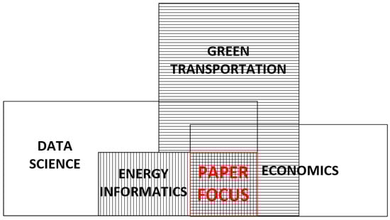 This paper is a review which explores EVs from the aspect of three interdisciplinary studies—green transportation, energy informatics, and economics—as depicted in Figure 1. That perspective gives us a clear view of the current state and the future development of private transport. Even though green transportation is a generic term for zero-emission vehicles (e.g., cars, trains, and buses), within this work, we use the term green transportation to refer to battery electric vehicles (BEV) and plug-in hybrid electric vehicles (PHEV). Energy informatics is also a generic term that includes a broad field of research with a focus on information in energy systems. This paper only observes energy informatics studies that are strongly associated with EVs (e.g., charging of electric vehicles, the impact of EVs on a power grid). Economics is a highly relevant research domain since the EVs introduce great changes in the petrol industry and vehicle market. Previous three research fields will be observed from the data science point of view. Data science, according to the Van Der Aalst [20] can be defined as a combination of classical disciplines, i.e., statistics, data mining, databases, and distributed systems, for solving various challenges using domain-related datasets. The focus of this paper is an intersection of all four domains and to the best of our knowledge, this is the first review that aims to systematically provide such an overview of this interdisciplinary research field.