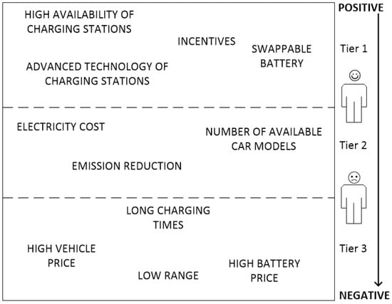 Ko and Hahn [65] (2013) stated the importance of knowing the potential EV owner’s preferences about electric vehicles. They further research their preference through the questionnaire among 250 households at the end of June 2009 in Korea. They used six key attributes to asses the willingness to pay for an EV: battery price, holding tax, subsidies type, subsidies level, battery swappability, and availability of recharging infrastructure. As expected, potential EV owners are willing to pay more if EV has a swappable battery and if charging infrastructure is developed and easy to access, since that considerably lowers the range anxiety. The consumers also prefer lump-sum payment over the installment payment of subsidies. This research was of great importance for car manufacturers, governments, and the charging infrastructure providers, because it gives an insight into user preferences for adoption of EVs.
