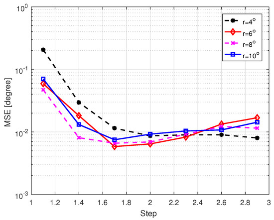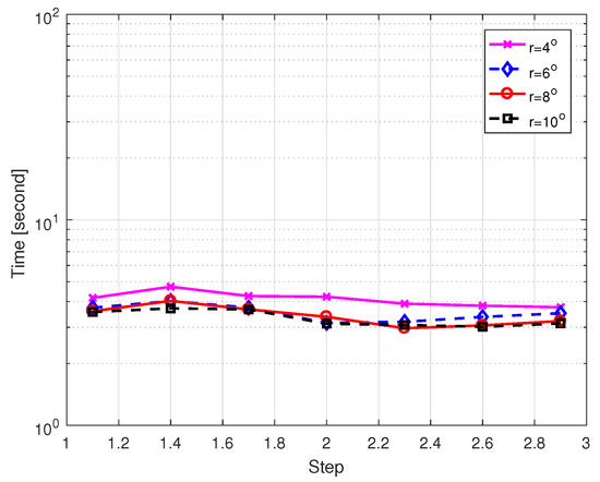 where the superscript denotes the value in the last iteration. At the first iteration, D is set as a half of the initial grid interval, and is the closest initial grid point to . is a parameter with . The variable is a parameter, and the influence of different values of on the proposed algorithm is discussed in the next section.