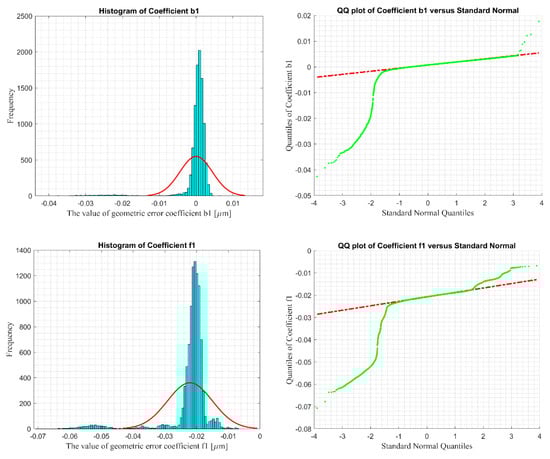 Distributions of the uncertainties of some geometric error correction coefficients.