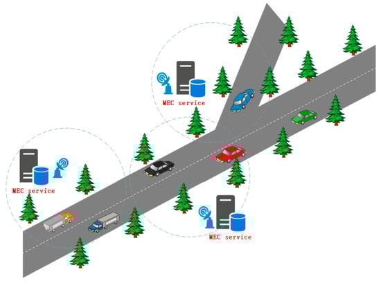 Mobile edge computing (MEC) is a new type of computing model proposed in recent years. MEC refers to an open platform that integrates network, computing, storage and application core capabilities on the side close to the source or data source []. Therefore, the delay-sensitive computing tasks can be offloaded to the edge cloud processing, enabling smart devices to obtain services from the edge computing servers (ECSs) of nearby base stations (BS), which greatly reduces the network delay []. This model is widely supported by academia and industry, and is considered to be one of the key technologies for next-generation networks. An increasing number of vehicles get access to nearby ECS, and ECS needs to collect and process a lot of data, thus causing network congestion. But the arrival of the 5G network further improves the practicality of MEC. Due to the high speed (transmission rate up to 10G/s), low latency (transmission delay is less than 1ms) of this 5G network, the data can be exchanged between the vehicle and the ECS within a few milliseconds [,,]. Therefore, the combination of 5G and MEC can satisfy autonomous driving tasks owing to high-performance computing and low network latency.
