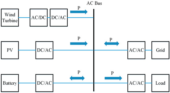 The general scheme of an AC microgrid. Abbreviations: AC; DC; P; PV, photovoltaics.