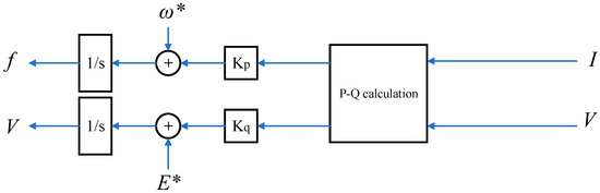 Droop based methods are a widely used approach [25,26,27]. Droop principle is emanated by the concept of synchronous generator power balances. An unbalance between the output electrical and input mechanical power makes a change in the frequency of system and rotor speed. Moreover, variations in the reactive power of output cause a deviation in the voltage amplitude. Similarly a characteristic can be artificially made for electronically interfaced RES. In this technique, the equations of active power and frequency and reactive power and voltage are obtained by: