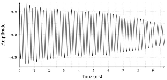 It is clear that this table represents a nonlinear behavior. In Figure 2, we show a measured beat signal for this particular VCO. To get the best possible experimental data for the single target case, we used a coaxial cable-based delay line which guarantees single reflection. Theoretically, the beat signal must be a single tone sinusoidal signal; however, the measured beat signal’s instantaneous frequency and amplitude are time-varying, and both quantities decrease from the beginning of the chirp to the end, as seen in Figure 2.