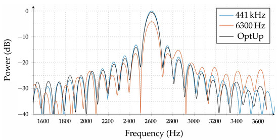 Experimental measurement-based comparison of standard interpolation (6300 Hz) vs. optimal upsampling approach (OptUp).