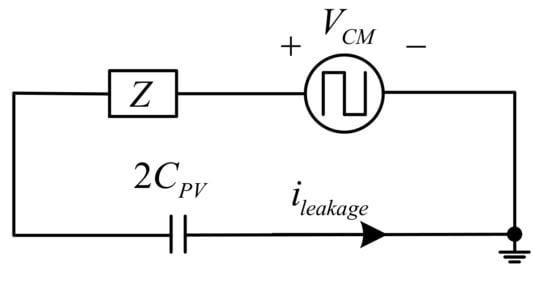 In order to understand the factors affecting the leakage current, a common-mode loop model, as shown in Figure 2, is established. Where, VCM represents the common-mode voltage (CMV), and Z is the equivalent impedance of the common-mode loop.