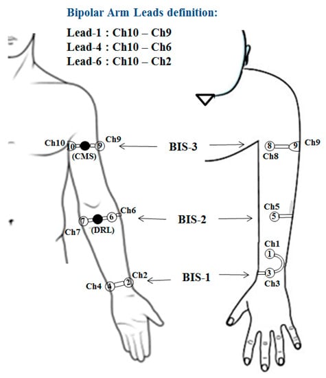Suggested electrode locations for electrocardiographic signals (ECG) recovery along the left arm [].