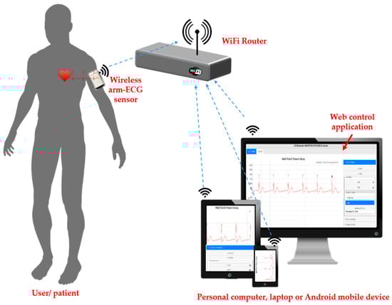 - Ahammed, S.S.; Pillai, B.C. Design of Wi-Fi Based Mobile Electrocardiogram Monitoring System on Concerto Platform. Procedia Eng. 2013, 64, 65–73. [Google Scholar] [CrossRef][Green Version]