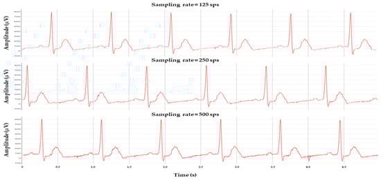 The ECG R-peaks are one of the most prominent features of the ECG waveform, therefore they are widely used in heartbeat segmentation algorithms required for automatic arrhythmias classification []. The interval between consecutive R-peaks (called the R-R interval) allows the determination of the heartbeat rate, and it is especially important for monitoring heart rate variability (HRV); thus the R-peak correct preservation was one of the principal goals of our arm-ECG sensor system.
