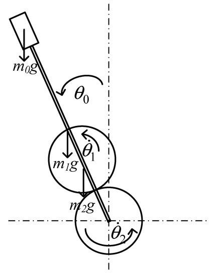where l is the pendulum length, represent the kinetic energy of the pendulum, planetary gear, and center gear, respectively; P0 and m0 denote the potential energy and the mass of the pendulum, respectively; P1, I1 and m1 and represent the potential energy, the moment of inertia, and the mass of the planetary gear, respectively; and P2 and I2 are the potential energy and the moment of inertia of the center gear, respectively.