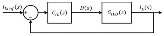 In this mode, all parameters are independent of the operation point, and then the corresponding transfer function is intrinsically linear. The control consists of forcing , which is accomplished by means of the controller (). The resulting closed-loop block diagram is depicted in Figure 8. The performance of this control mode is measured in terms of its capacity to track the current reference, which in turn is given by an outer controller in the same layer or by a superior decision layer within the hierarchical control of the microgrid.