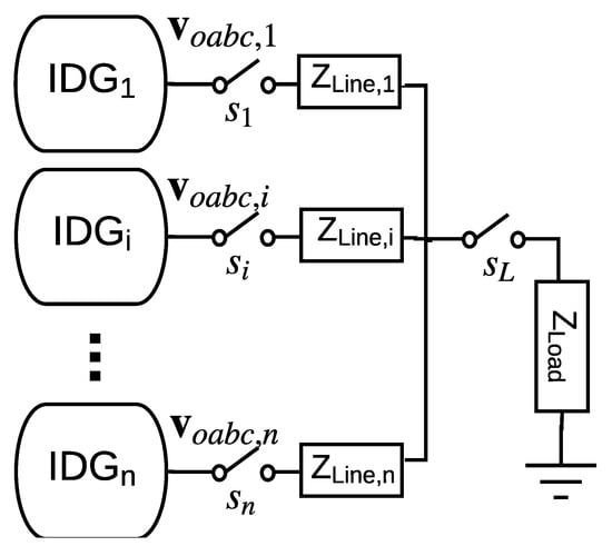 The equivalent IDG circuit based on Assumption 1 is presented in Figure 4. As we can see, the equivalent line impedance parameters can be defined as , where and .