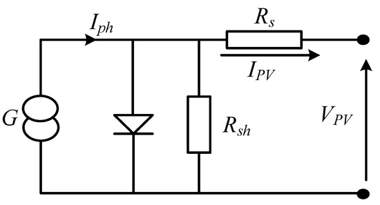 The equivalent circuit of a PV cell can be expressed mathematically using in the following Equations (1)–(5) (Assume )
