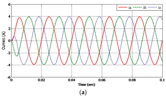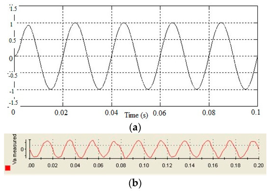 Considering the similarities exhibited by the phase current waveforms collected from the simulation and experiment, both acquire the same frequency and phase angle, as shown Figure 13. However, the experimental current waveform has a slight distortion, which can be seen by the tiny ripples.