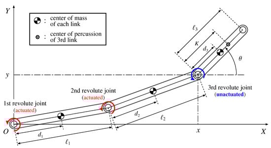 A three-joint manipulator with passive third joint, derived from Reference [].