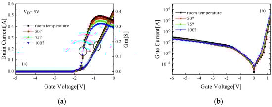 - Akita, M.; Kishimoto, S.; Mizutani, T. High-frequency measurements of AlGaN/GaN HEMTs at high temperatures. IEEE Electron Device Lett. 2001, 22, 376–377. [Google Scholar] [CrossRef]