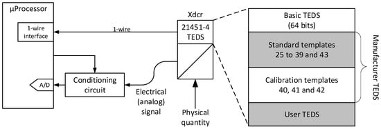 The TEDS are a key element to accomplish the principle of “transducer plug and play” [2,3,4]. A microprocessor can read the information stored in the TEDS and use it to configure the measurement chain with minimal human interaction. This process of self-identification and self-configuration reduces configuration errors and improves the interoperability among devices.