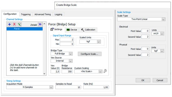 Configuration of the load cell in the Measurement and Automation Explorer (MAX).