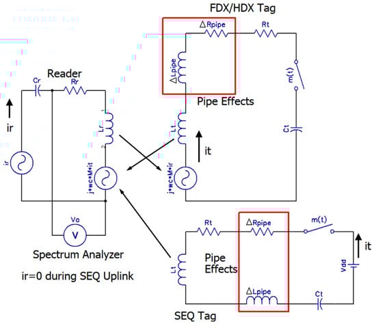 SEQ and FDX/HDX RFID equivalent circuits with pipe.