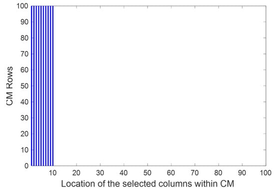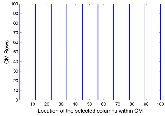 The distribution and locations of these columns under this method can be represented conceptually as shown in Figure 2; the blue lines represent the locations of the selected columns in the CM.