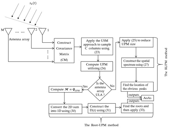 The whole signal processing steps needed to implement the RUPM and Root-UPM methods started from measuring signal by an antenna array until obtaining the AoA of the incident signals can be summarised in Figure 4.