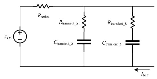Battery models integrated in the wind farm are commonly used for simplified models that only have fixed parameters regardless of the SOC variation. However, in this paper, a high-fidelity battery model with parameters of a battery equivalent circuit based on the SOC was used to accurately examine the performance change of the battery due to the proposed coordinated control. Figure 2 shows the equivalent circuit models that can be used to represent the electrical property of Li-ion batteries and Figure 3 shows the experimental data of an open circuit voltage and line current. These data were extracted from a lithium-ion battery when the battery was discharged by inversely pulsating in 5% increments of SOC.