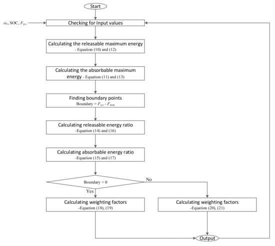 The resource and system values, such as wr, SOC, and Fsys, were required when implementing the proposed algorithm. It performed the following series of steps: