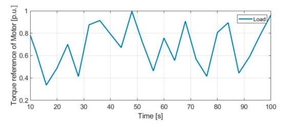 The system frequency deviation was also based on the load variation. Figure 13 shows the load variation profile for case 4. The load fluctuated between 2 MW and 5.5 MW, and the peak load occurred at 48 s for 5.5 MW. The load variation resulted in significant system frequency fluctuations. In this case, the coefficients p and q in the coordinated control were set at 0.8 and 3.4, respectively.