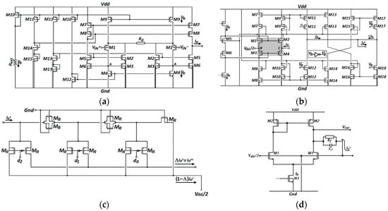 - Bult, K.; Geelen, G.J.G.M. An inherently linear and compact MOST-only current division technique. IEEE J. Solid State Circuits 1992, 27, 1730–1735. [Google Scholar] [CrossRef]