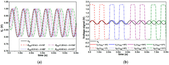 Simulation of Phase Shifter as a function of resistor RPS: (a) Vr signal; (b) Vr and VR signals.