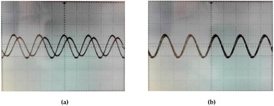 Photograph of VS signal versus VrY signal with phase shift θPS of: (a) 105°; (b) 26°.