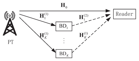 where and . For simplicity, both and are referred to as the reflection coefficient of BD k, although is N times of . Then, the received signal at the reader via backscatter links can be written as
