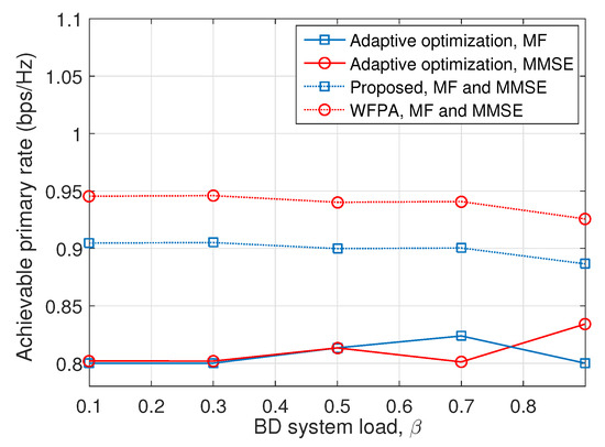 Achievable primary rate versus BD system load.
