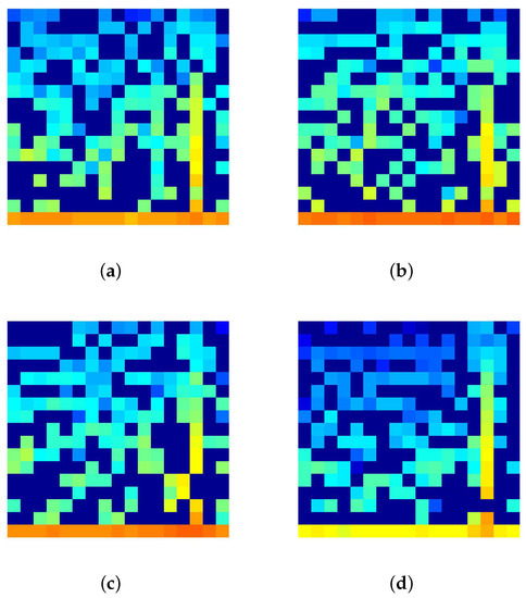 where denotes the segment of in Equation (7). We convert the spectrogram generated for each segment into RGB-images (see Figure 4). The necklace sensor generates a high amplitude varying signal at the occurrence of eating activity and remains silent during other activities (See Figure 2g).
