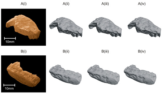 - Falkingham, P.L. Generating a Photogrammetric Model Using Visual SFM, and Post-Processing With Meshlab; Technical Report; Brown University: Providence, RI, USA, 2013. [Google Scholar]